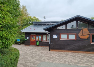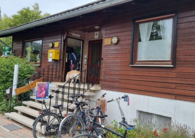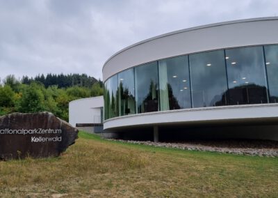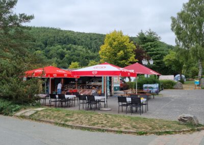 Direkt gegenüber vom Campingplatz liegt das Nationalparkzentrum Kellerwald, das ebenfalls ein Restaurant (Hunde auf der Terrasse erlaubt) beinhaltet.