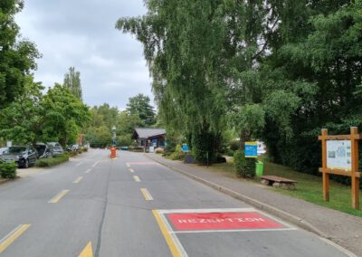 • Kostenfreier Parkplatz (außerhalb des Platzes)