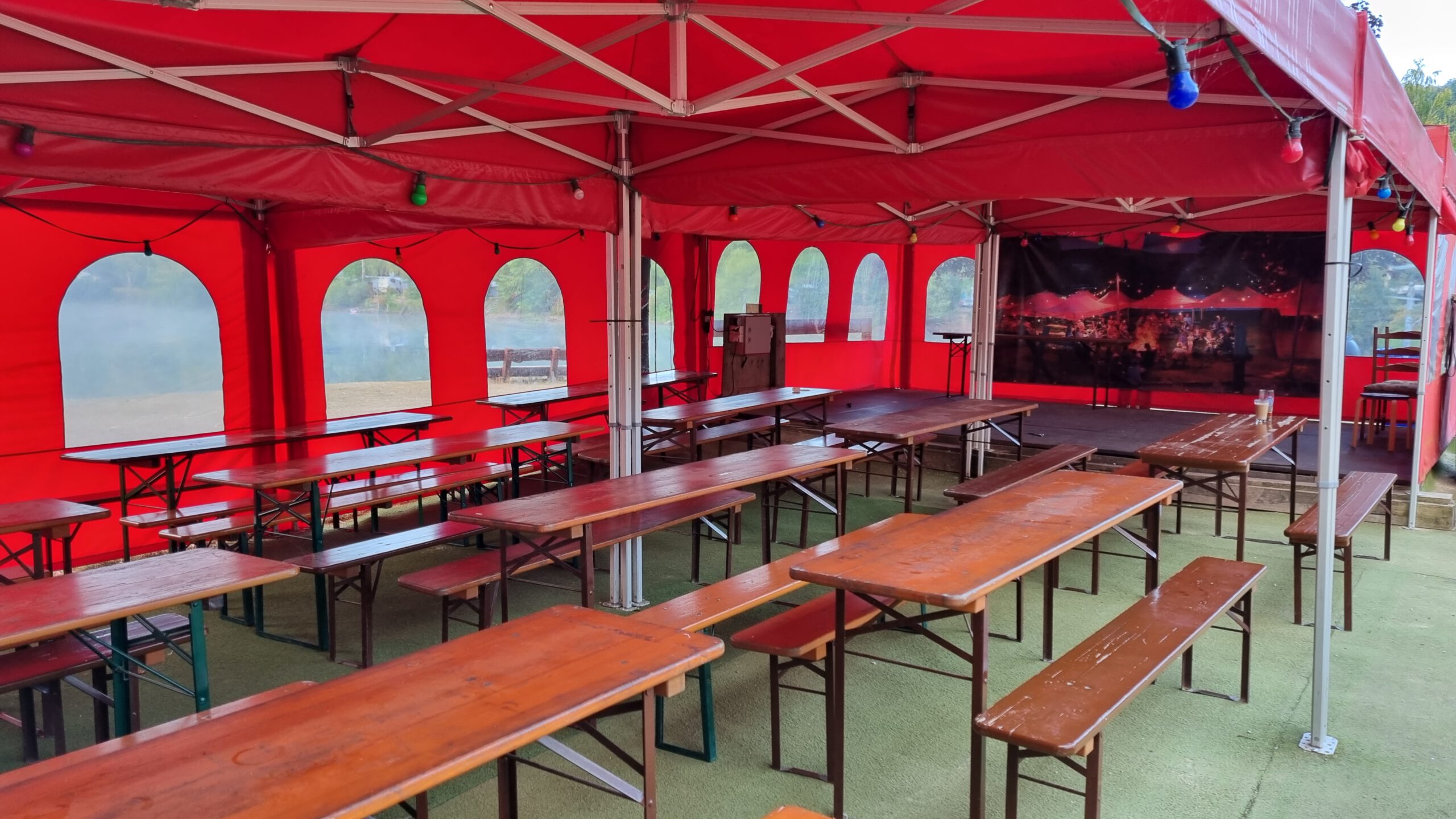 • Veranstaltungszelt mit Bühne (gelegentlich Live-Musik)