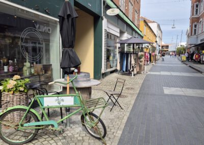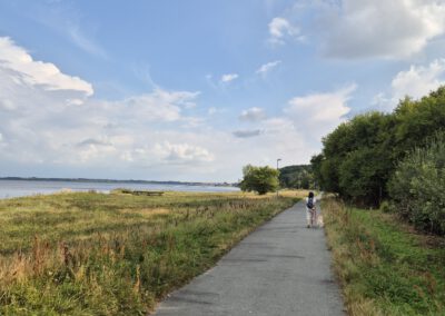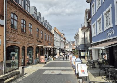Wir sind zu Fuß mit Fina nach Skive gegangen, es gibt einen schönen Weg am Wasser entlang oder auch oberhalb des Fjords. Nach ca. 30 Minuten erreicht Ihr das schöne Städtchen mit zahlreichen Einkaufsmöglichkeiten, Restaurants, Cafés und drei Häfen.