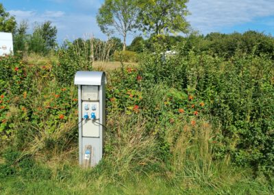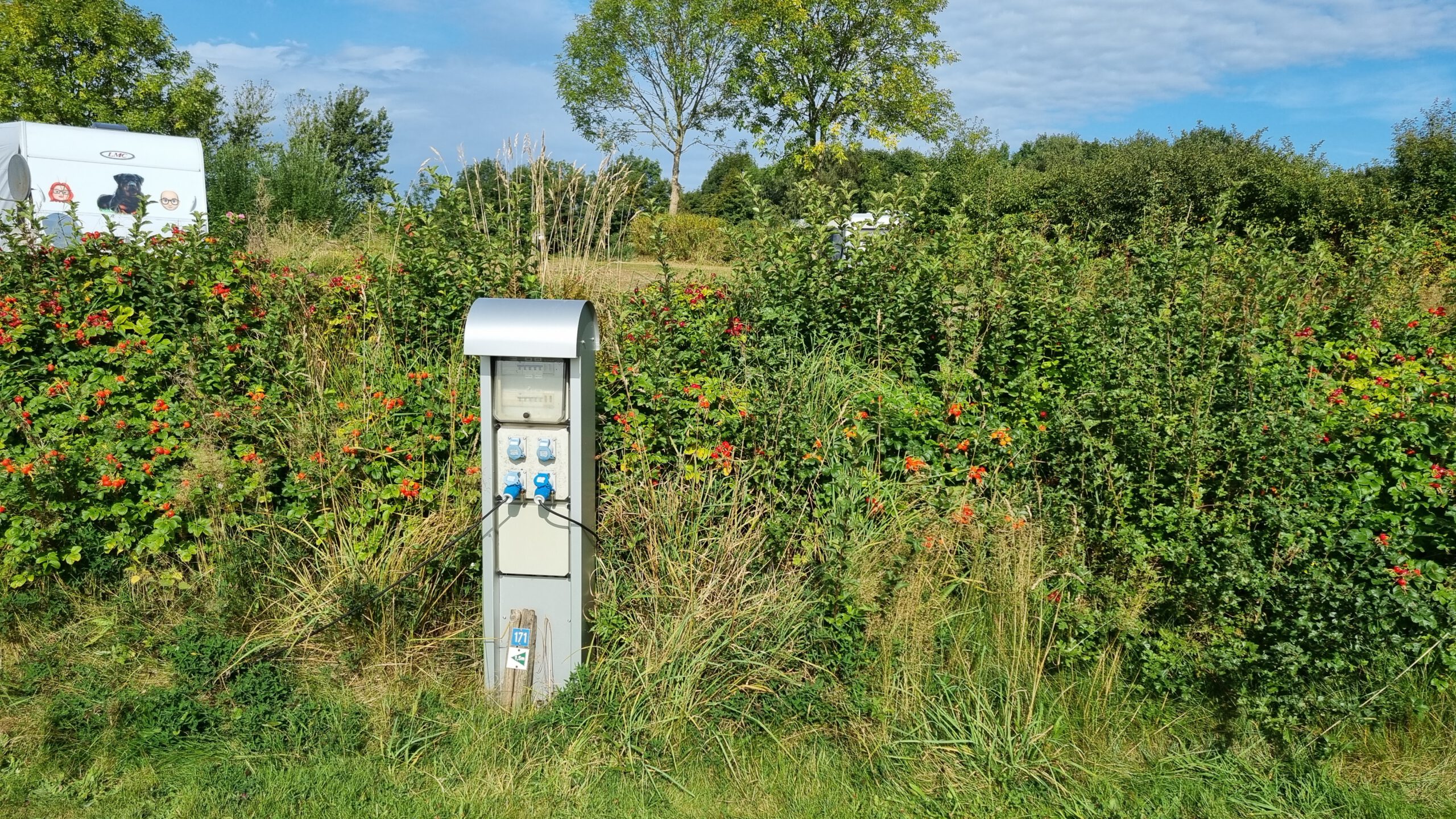 - Stromanschlüsse an allen Stellplätzen (kein Wasseranschluss)