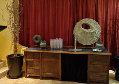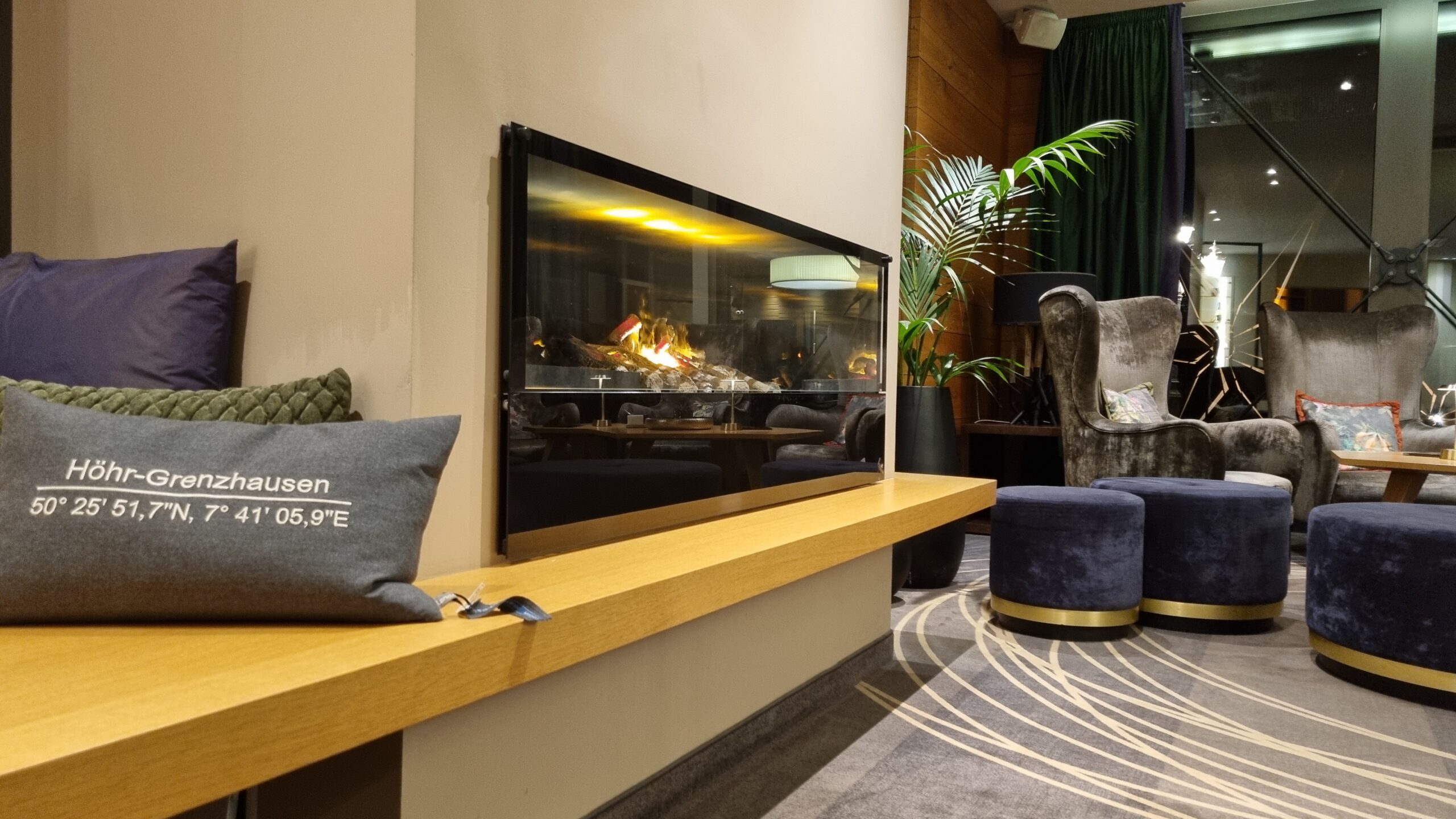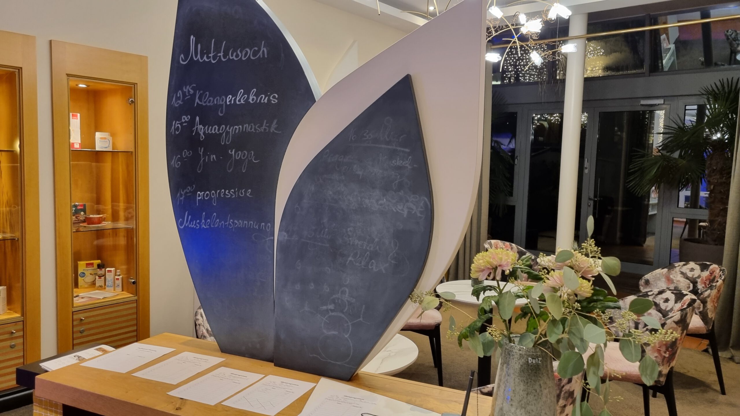 Kaum angekommen, wurde Kay und Fina in der Empfangshalle ein Lächeln der Mitarbeiter geschenkt und ein Wohlgefühl stellte sich ein. Hoppla, genau das Wohlgefühl fand sich auch wörtlich auf dem Teppich im Empfangsbereich wieder. Na, liebes Hotel-Team, da habt Ihr wohl eine Vorahnung gehabt.