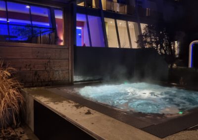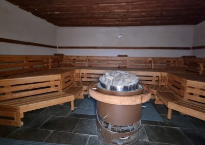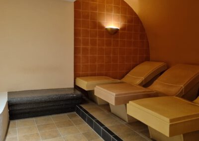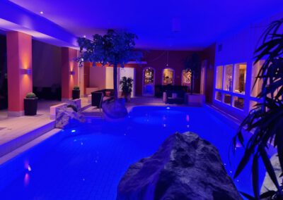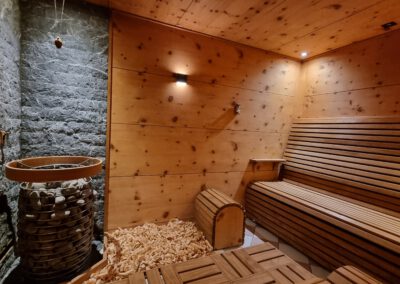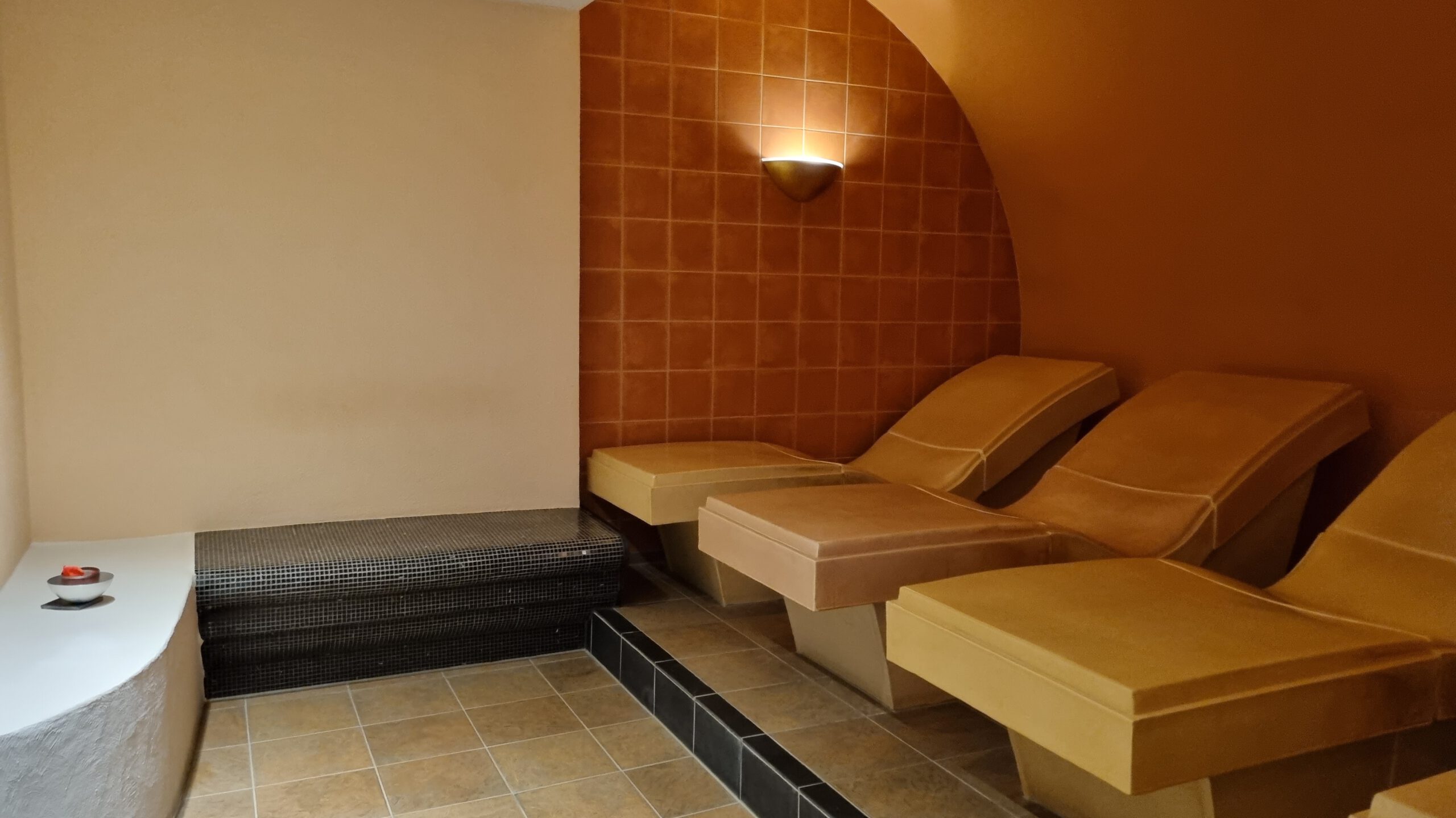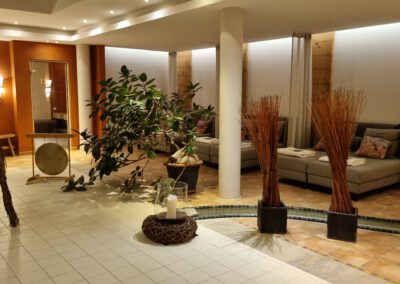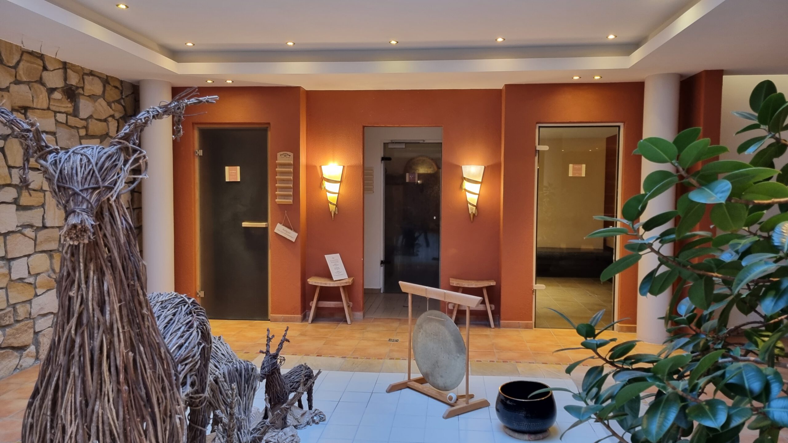 Das Hotel verfügt über einen großen Wellnessbereich von ca. 2.500 qm, bestehend aus diversen Saunen, Außen- und Innenpool, Whirlpool und einen Gartenbereich mit einer großen Erdsauna (ins Erdreich gebaute Sauna), in der Aufgüsse zelebriert werden.