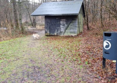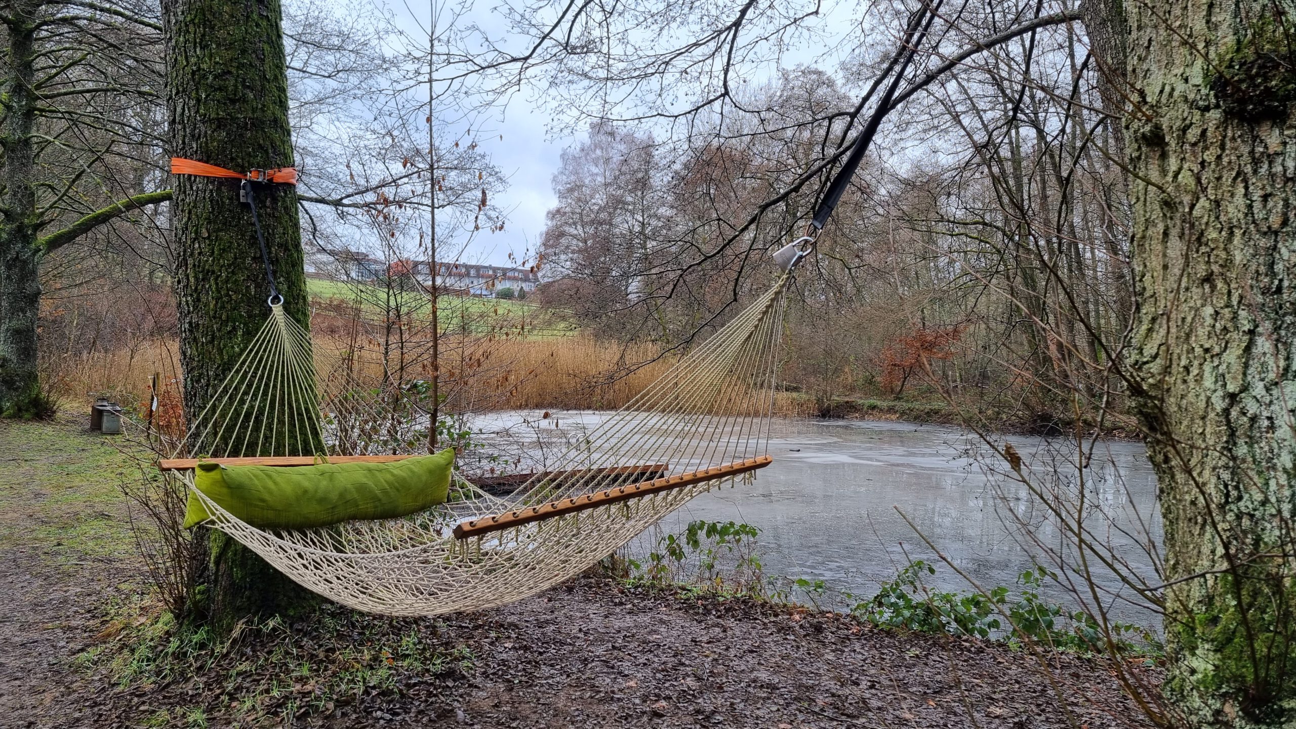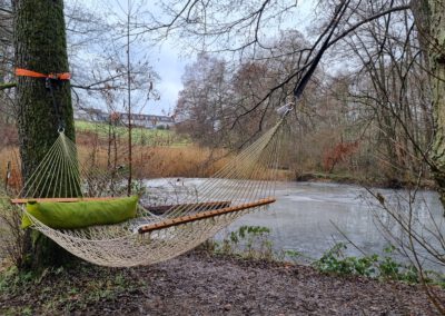Einen Steinwurf entfernt gibt es einen Weiher. Dort finden Hotelgäste Hängematten in den Bäumen und Eure Vierbeiner eine Möglichkeit, sich im Sommer abzukühlen, das geht aber auch im vorbeifließenden Brexbach.