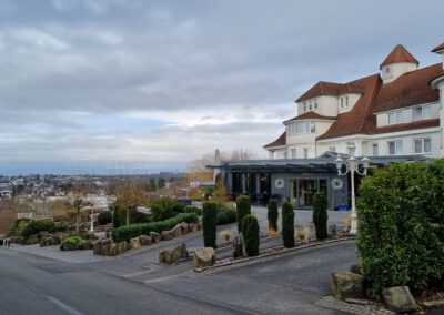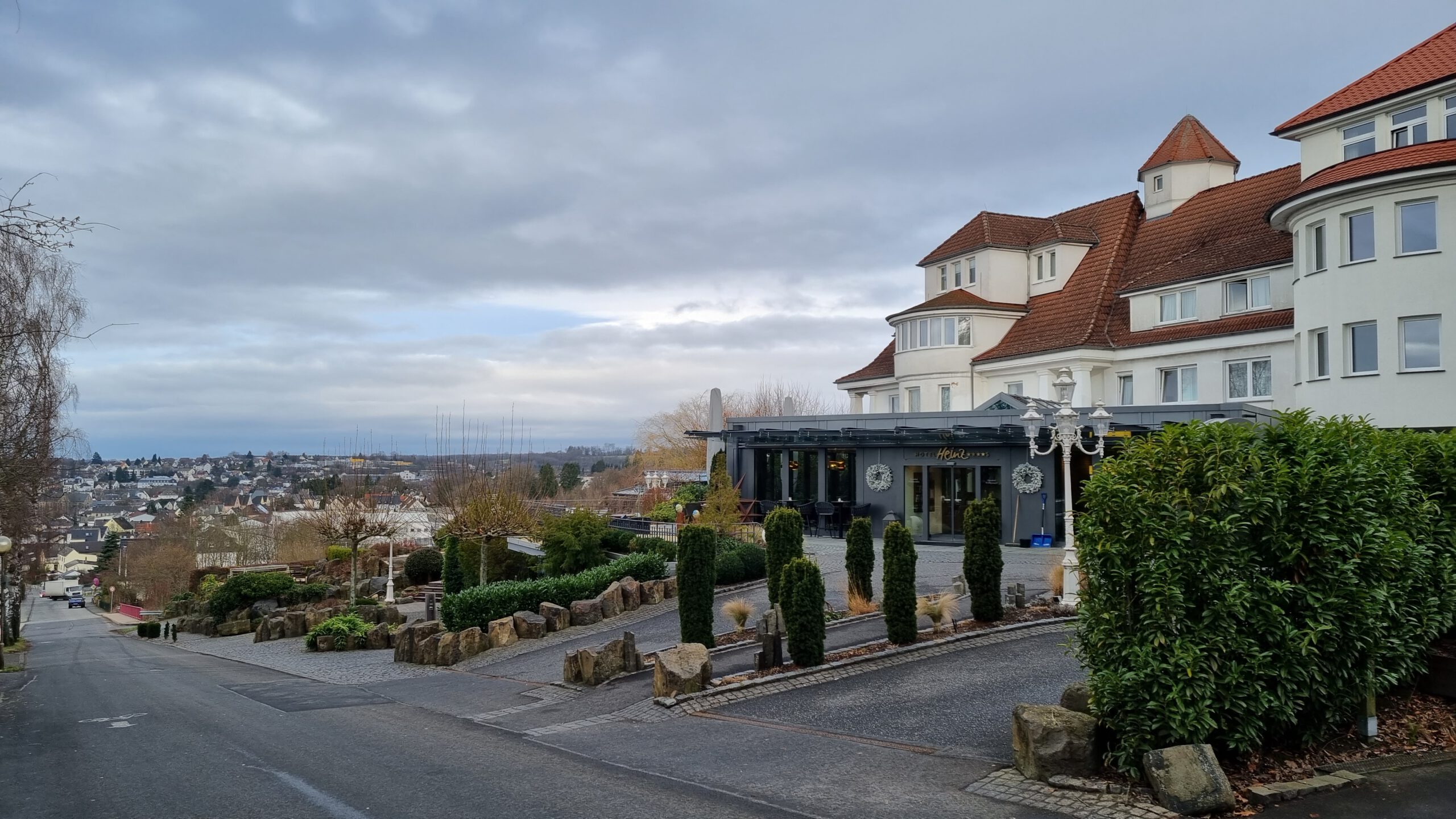 Trübes Wetter auf der Fahrt, das Hotel im Westerwald präsentierte sich regnerisch in grau.