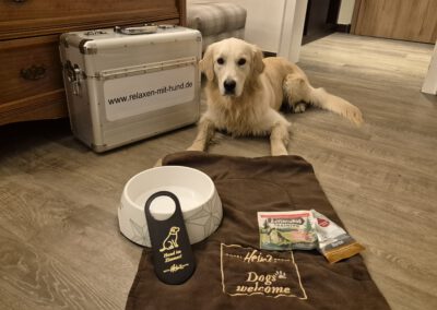 • Hundetreatment: Hundedecke, Napf, Pfotentuch, Leckerli