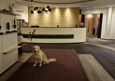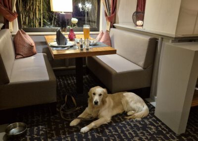Eure Vierbeiner sind im Hotel gerne gesehen und dürfen auch nach vorheriger Ankündigung mit ins Restaurant. In der Hotellobby und im Barbereich ist es ohnehin kein Problem.