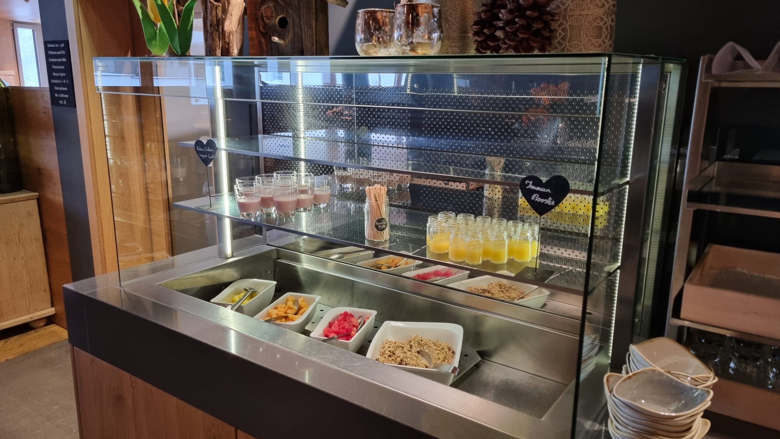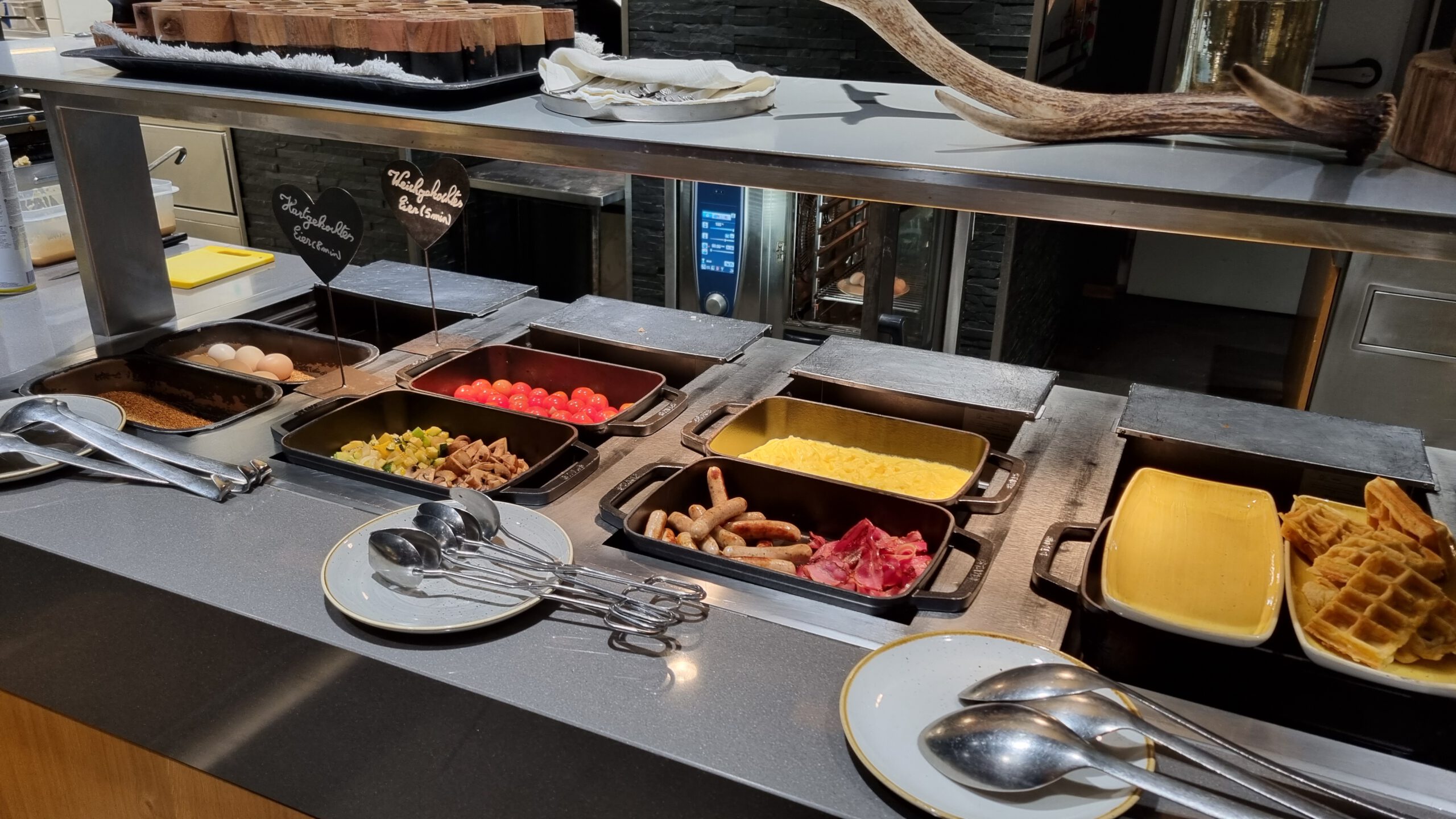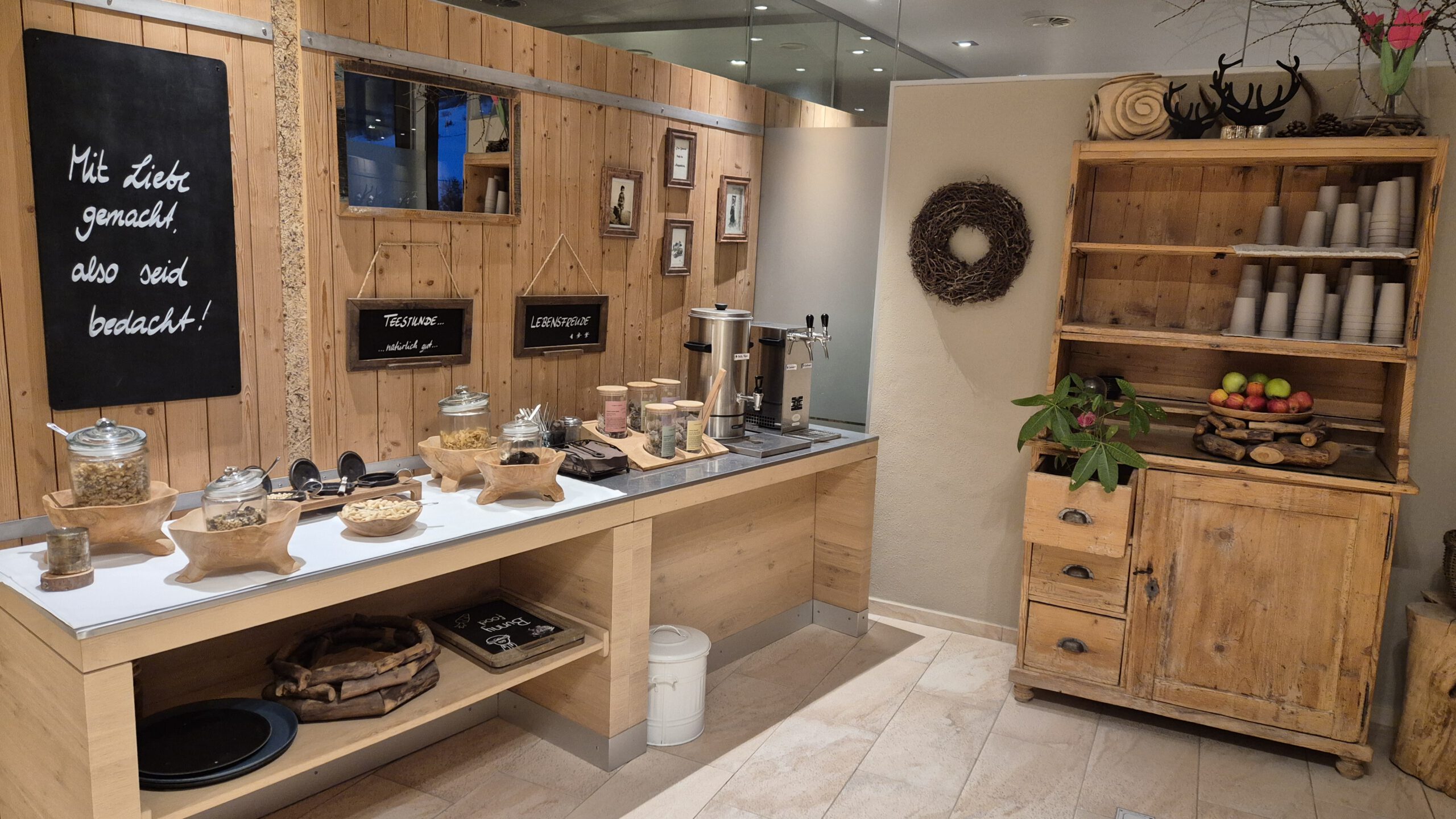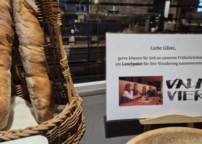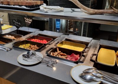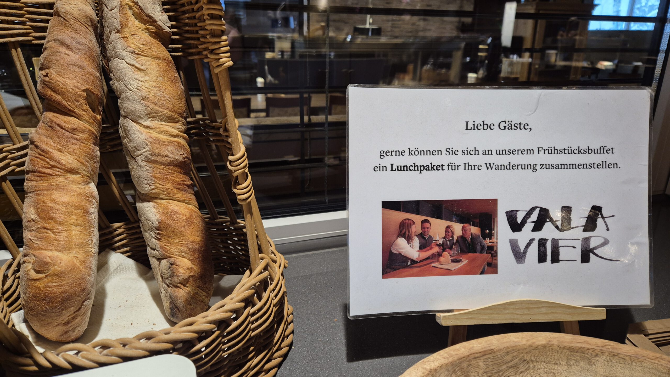 Das Frühstück wird in Buffetform gereicht. Es ist alles da und lecker. Toll ist es, dass man sich für die Wanderung ein „paar Stullen“ zum Mitnehmen schmieren darf.
