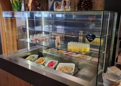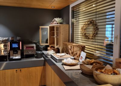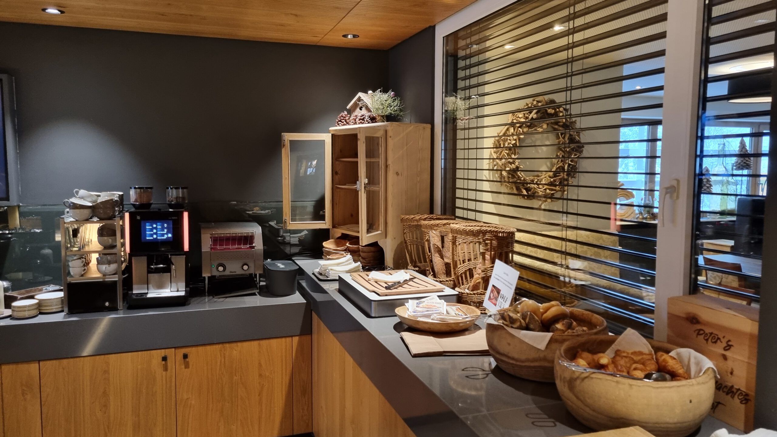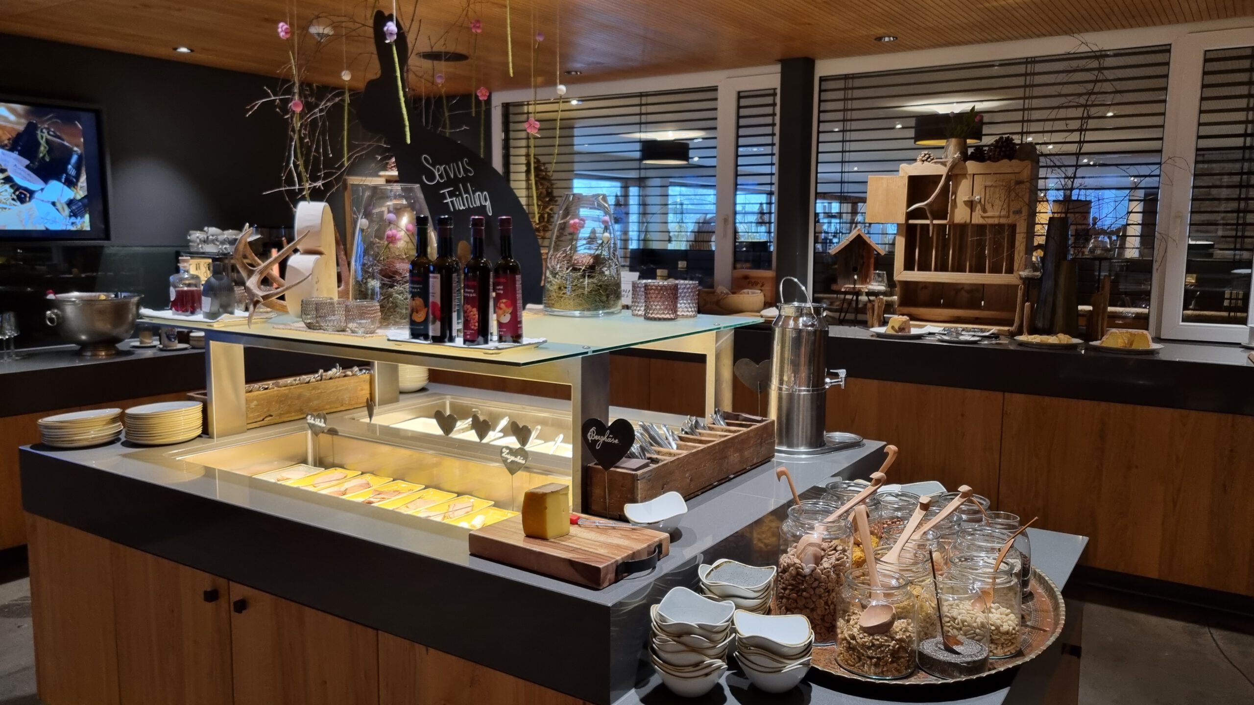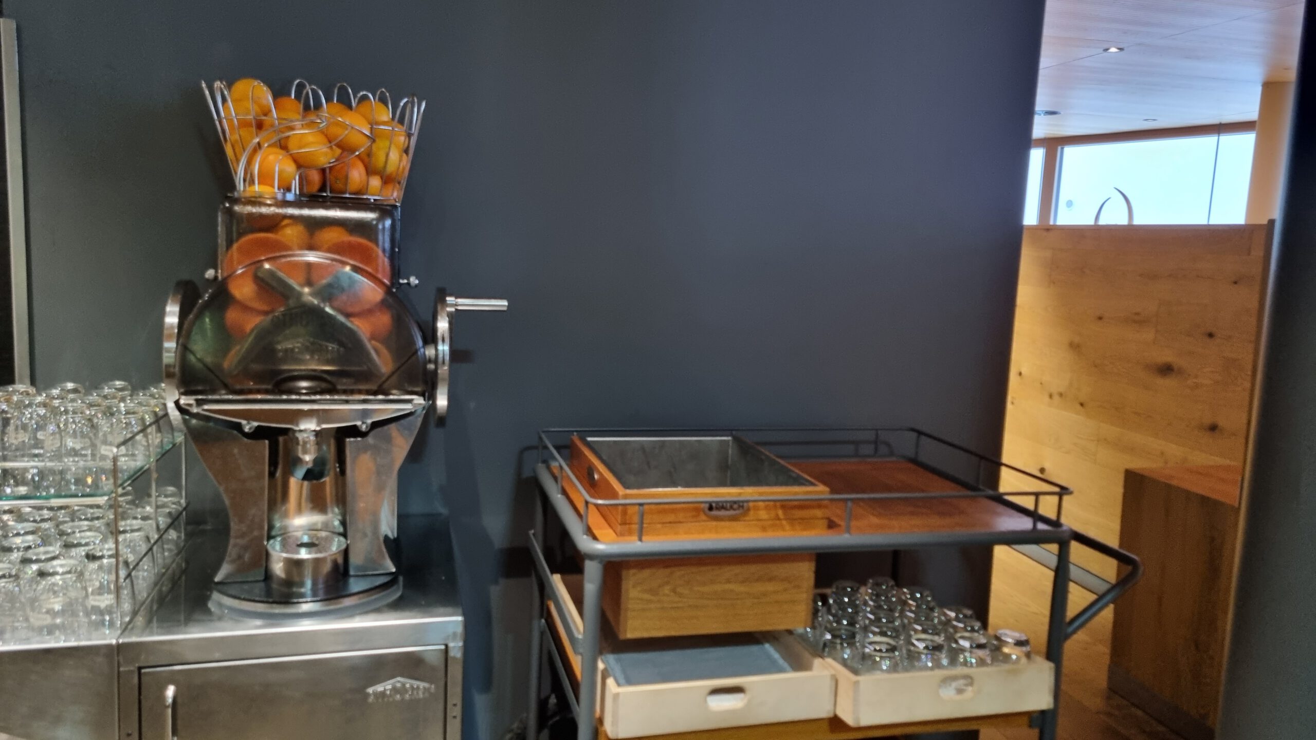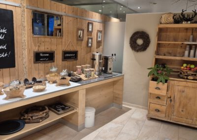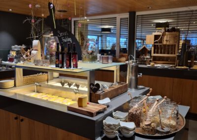 Das Frühstück wird in Buffetform gereicht. Es ist alles da und lecker. Toll ist es, dass man sich für die Wanderung ein „paar Stullen“ zum Mitnehmen schmieren darf.