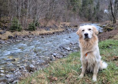 Das Hotel liegt direkt an einem Bach und an Startpunkten zum Wandern in die Natur. Wer möchte, kann mit seinem Hund auch gleich mit der Dorfbahn gegenüber dem Hotel auf den Berg fahren (Maulkorb nicht vergessen, falls doch…kann man auch im Hotel einen „Beißkorb“ leihen).