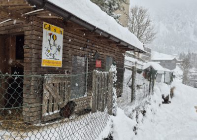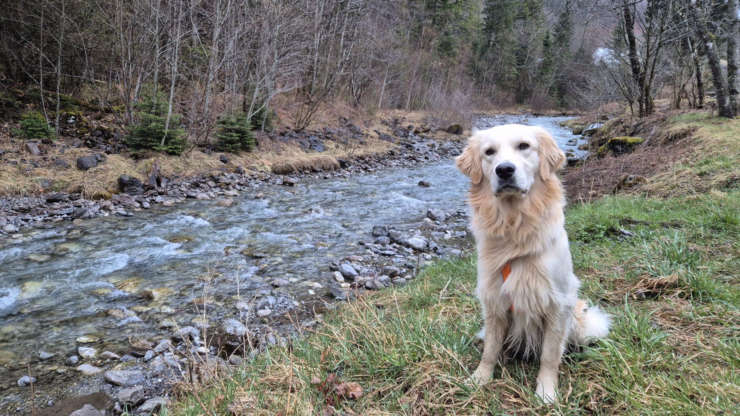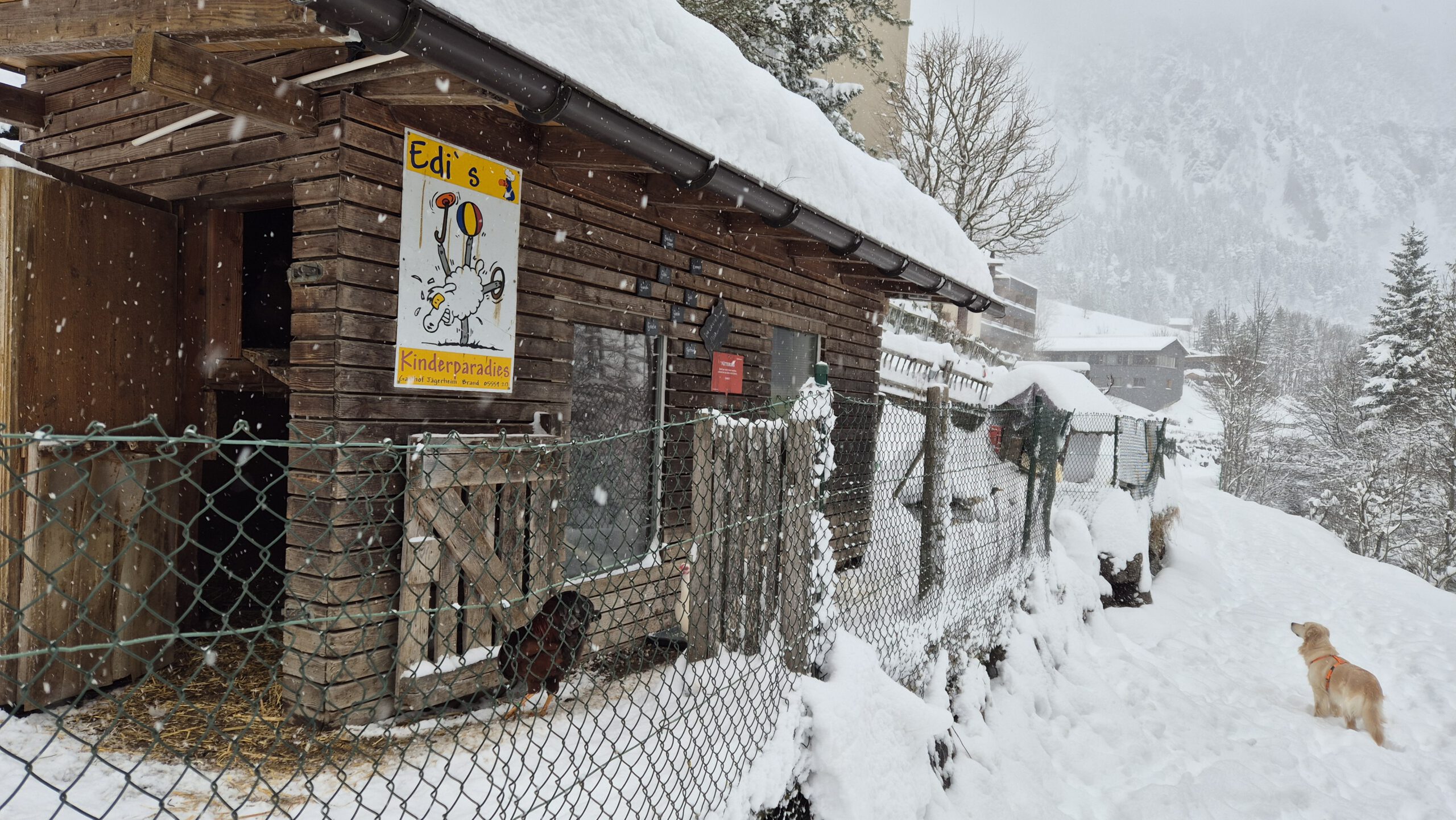 Als wir ankamen, war alles grün und Fina freute sich sehr über den Bach direkt am Hotel…dann kam der Schnee.