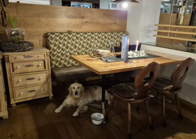 - Möglichkeit den Hund mit zum Essen zu nehmen: Ja, im Restaurant in Teilbereichen erlaubt