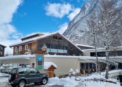 Donald sollte mal wieder Recht behalten. Im Grünen kamen Kay und Fina im Hotel Valavier an und über Nacht kam dann die Schneewalze. Alles weiß…egal, es war trotz „meterhohen“ Schnees ein traumhafter Aufenthalt.