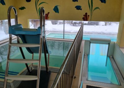 Im Pool- und Wellnessbereich gibt es so einiges zum Wohlfühlen. In einem Indoor- und Außenpool könnt Ihr Eure Bahnen ziehen.