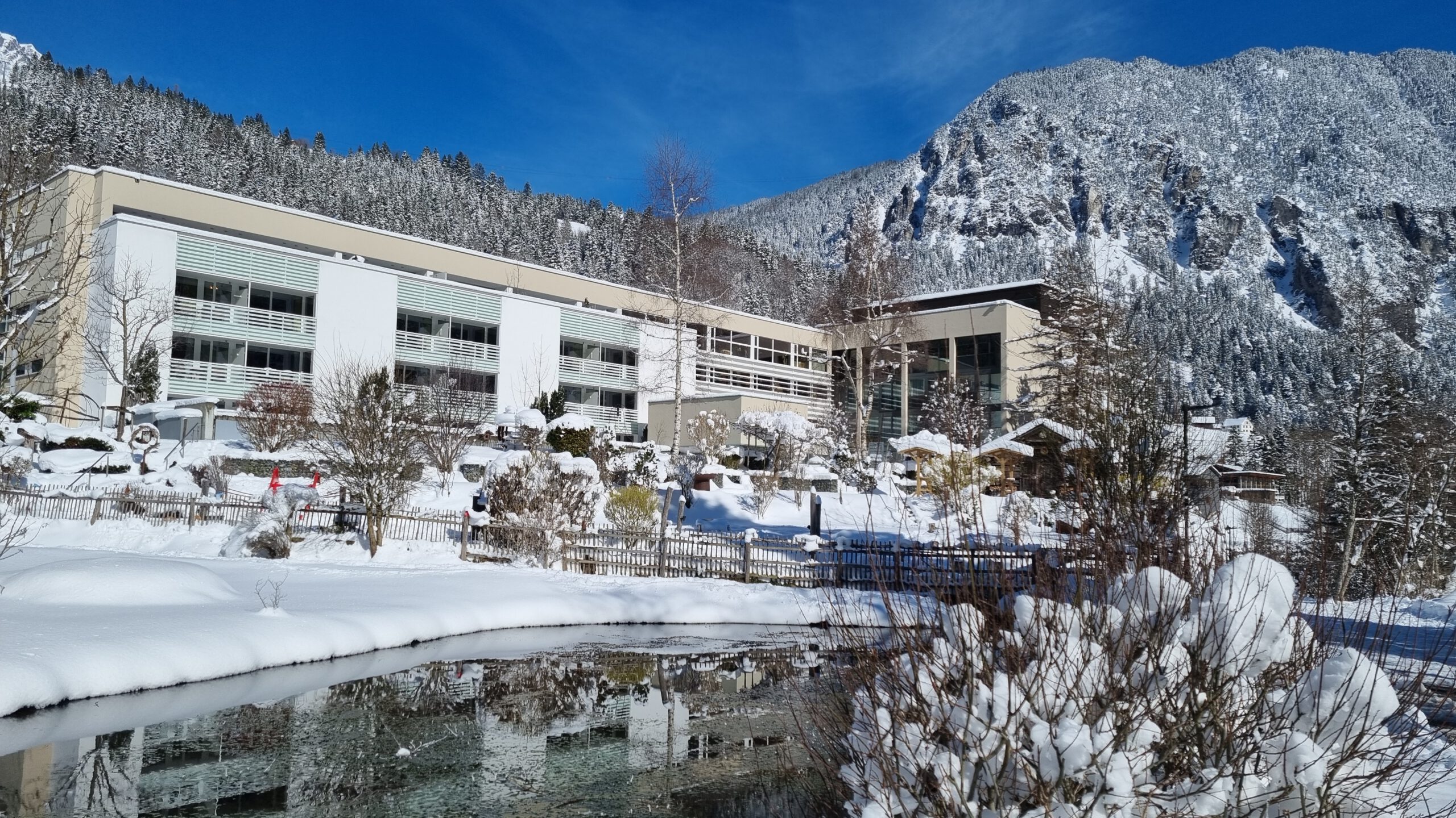 Der Schnee taute schon wieder und nun haben wir Lust darauf, Regina das Hotel im Grünen mit vielen Blumen drumherum zu zeigen.
