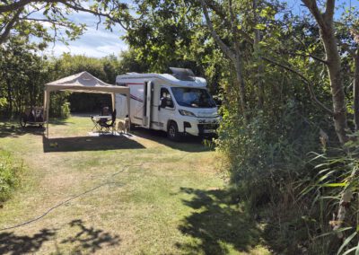 Ihr könnt im bewaldeten Teil aber Euer Lieblingsplätzchen suchen. Was uns besonders gut gefallen hat, sind eingewachsene Parzellen (Einzelplätze), in die man mit seinem Camper bzw. Wohnwagen einfährt und die sicht- und windgeschützt sind. Da hat man Privatsphäre und ist doch mitten drin.
