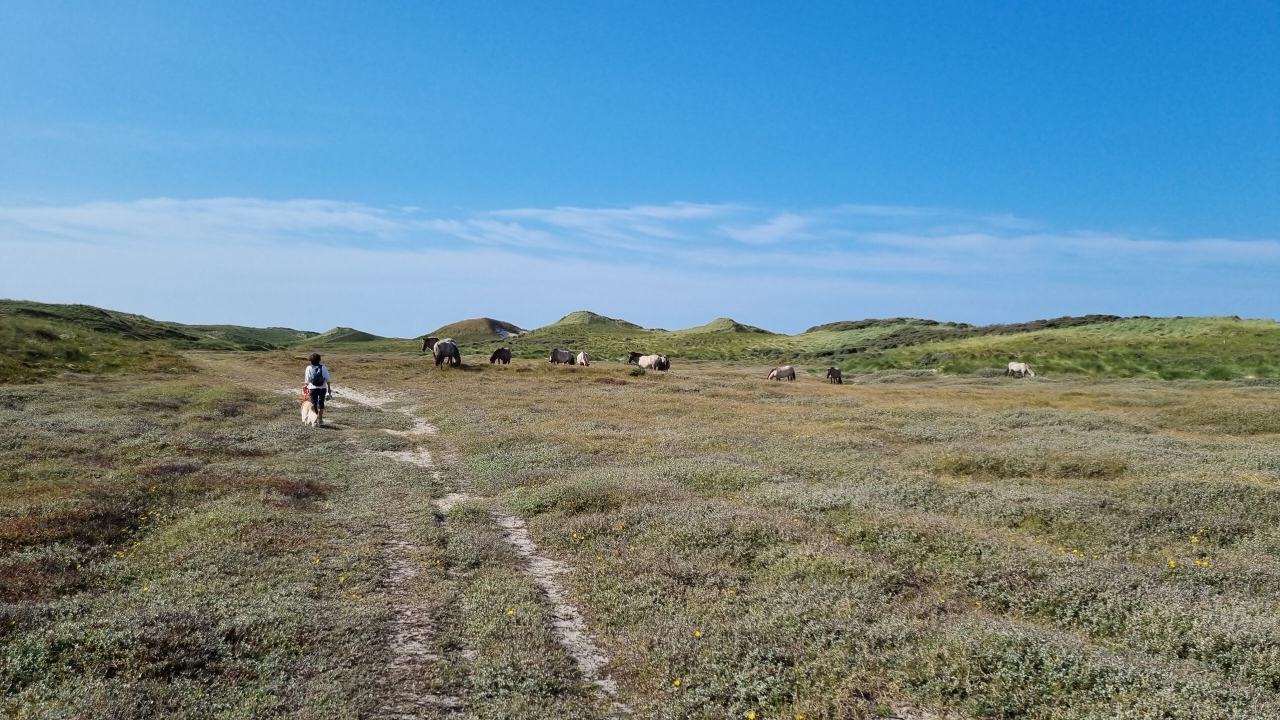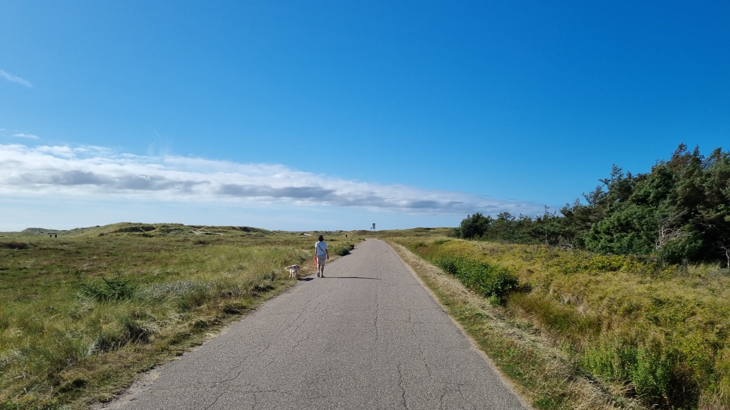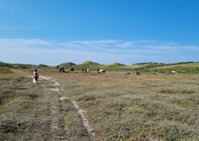 Naja, und in westlicher Richtung ist natürlich die Nordsee mit einem endlosen weißen Strand. Über eine geteerte Straße ohne viel Autoverkehr braucht man zu Fuß ca. 10 Minuten bis zum Wasser.