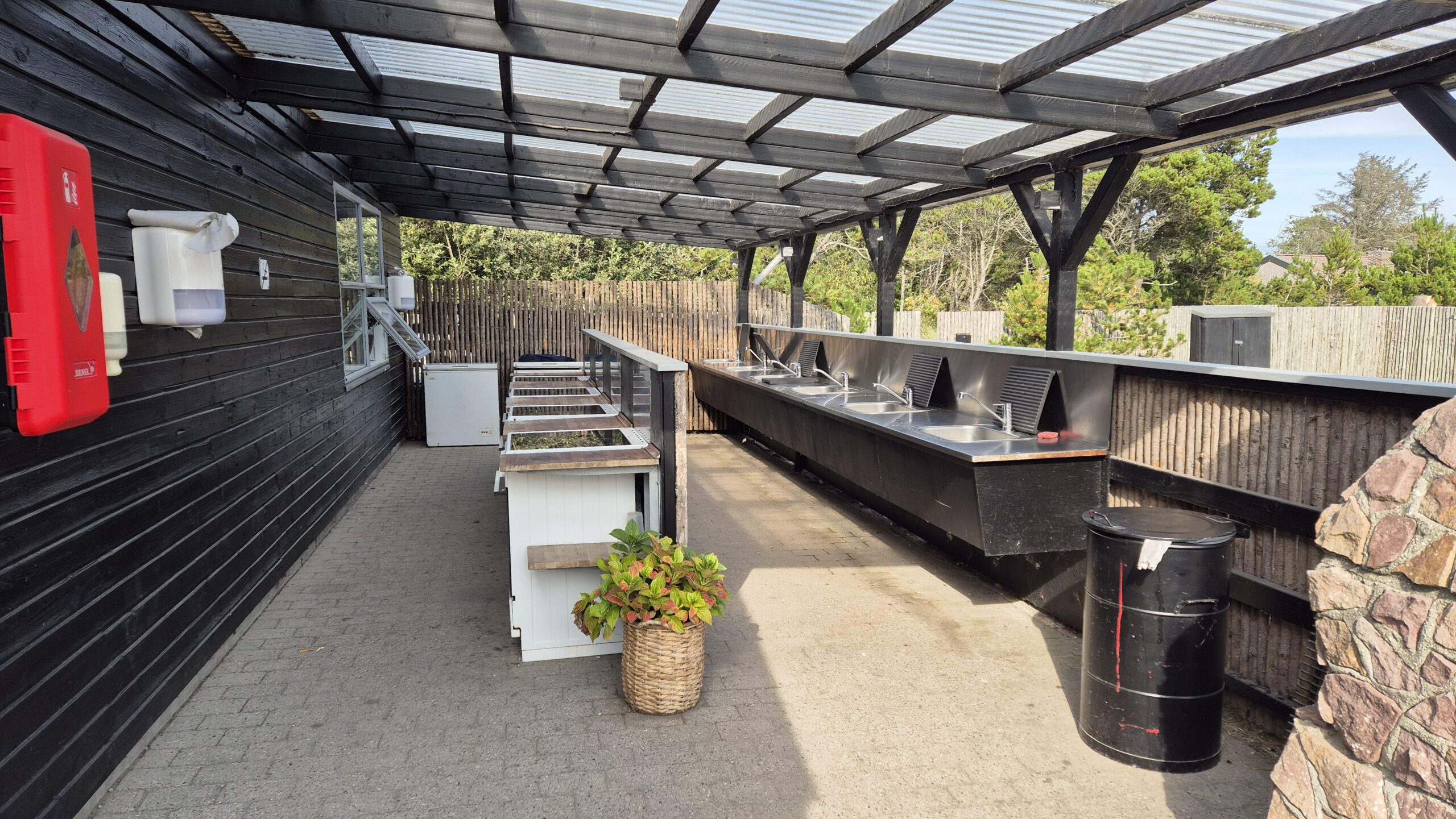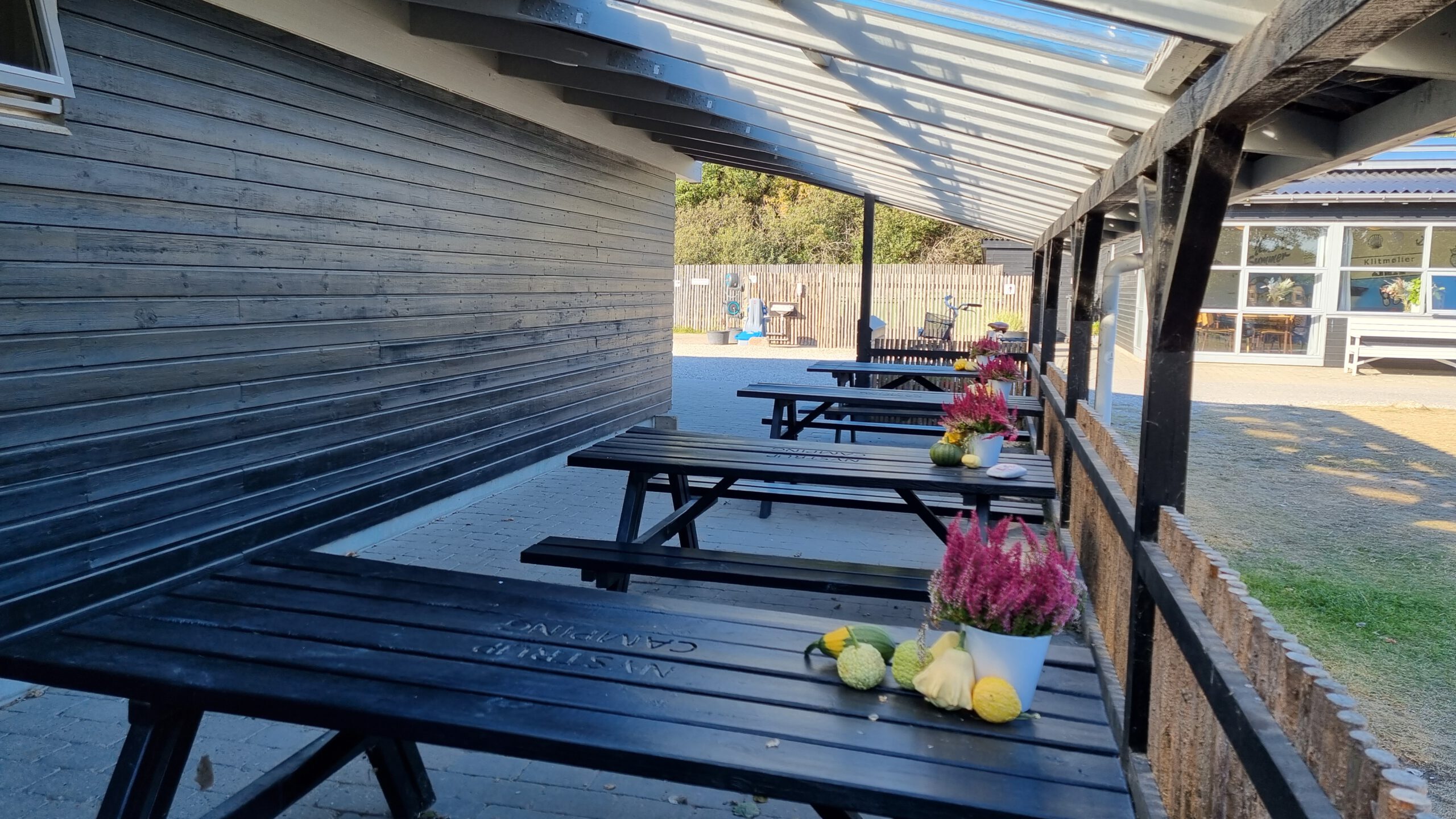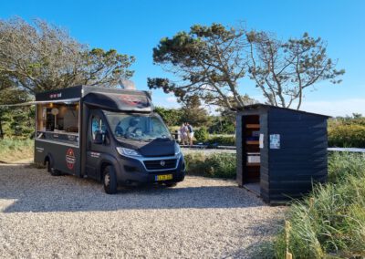 Ein Restaurant gibt es zwar nicht, aber es kommt regelmäßig ein Food-Truck auf den Platz. Es gibt eine kleine Selbstbedienungshütte mit Gemüse, einen kleinen Shop und an der Rezeption einen morgendlichen Brötchenservice.