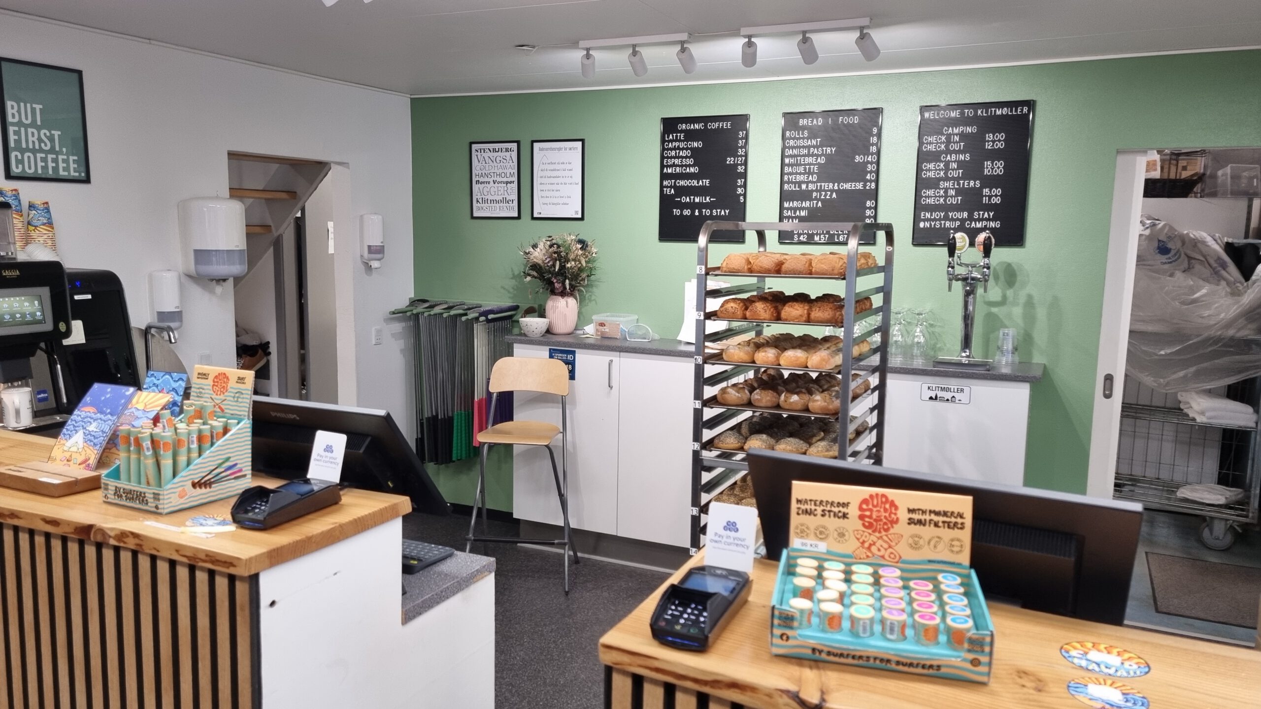 Angekommen hat uns ein junges sympathisches Team in der modernen Rezeption mit kleinem Shop und Brötchenservice herzlich empfangen.